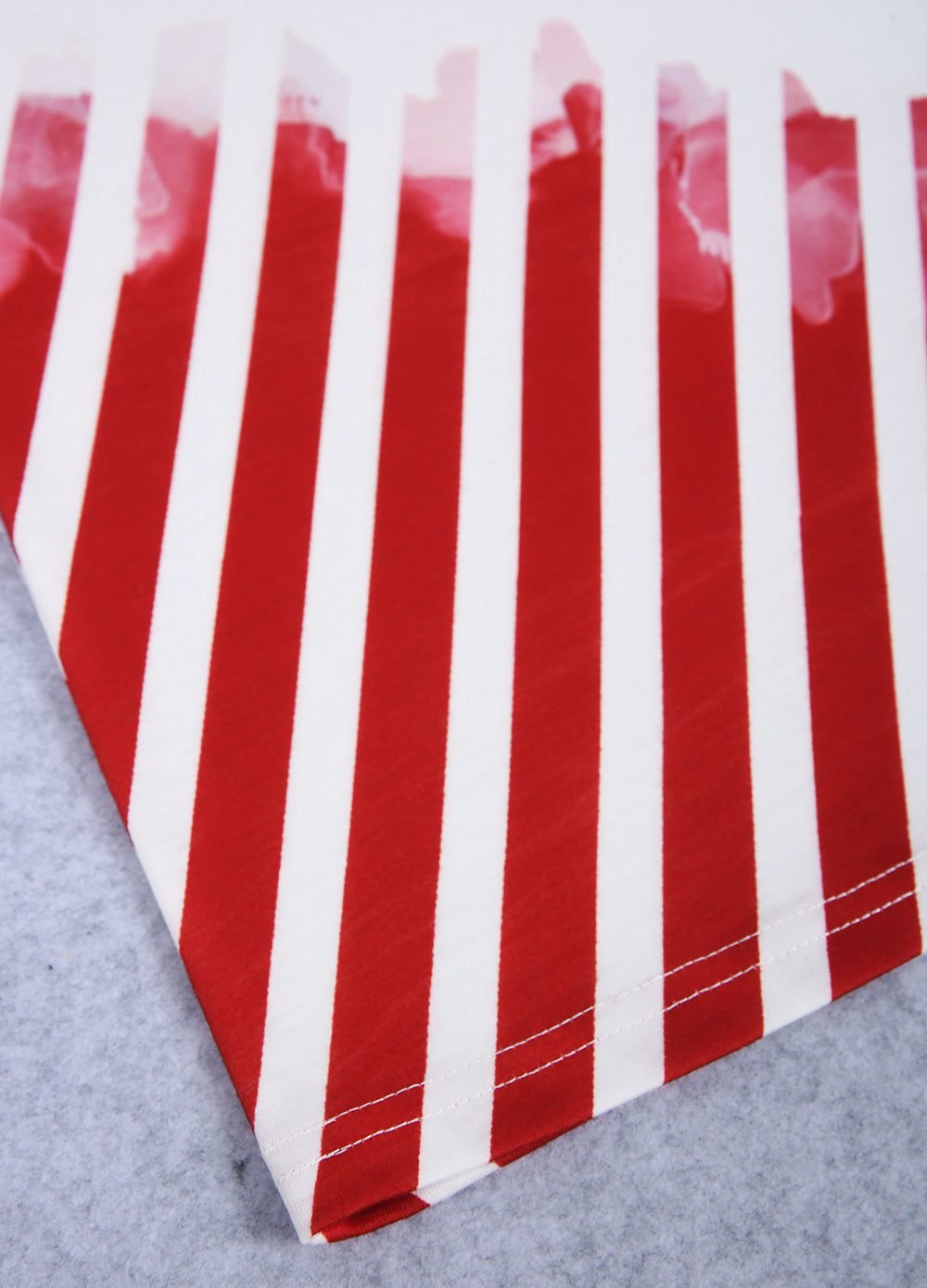 Celebrate the USA all year long with this adorable USA flag shirt! The button front short sleeve fit with an abstract American flag gives this red, white, and blue top a confident statement for any time. Wear this shirt on game day or any time and pair it with jeans, a skirt, leggings, and a jacket.